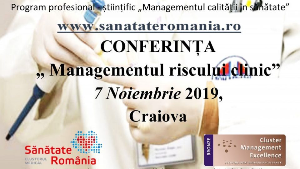 După București, Iași, Târgu Mureș, Constanța, Timișoara și Brașov, seria conferințelor regionale cu tema „Managementul riscului clinic” a continuat în data de 7 noiembrie 2019 în Craiova.